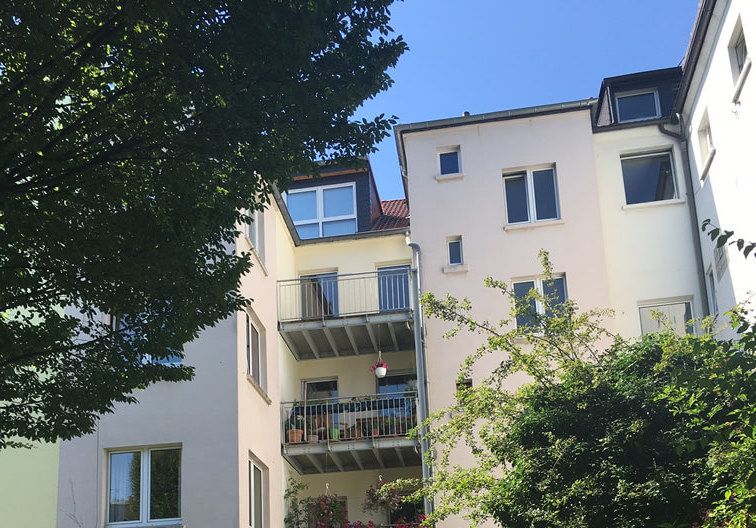 Wer vor dem Haus Johannesstraße 32 im citynahen Klinikviertel steht, ahnt nicht, was sich hinter der sanierten Fassade verbirgt: Fünf tolle, großzügig geschnittene Altbauwohnungen und ein schönes, altes Treppenhaus in frischem Outfit. Und eine Oase auf der Rückseite des Gebäudes: Der große, liebevoll angelegte Garten, der von weiteren Nachbargärten umgeben ist, bietet dem Betrachter je nach Jahreszeit eine überwältigende Aussicht auf Rotbuche, Rotdorn, Platane und Eibe, auf Flieder-, Hortensien- und Rosenbüsche.